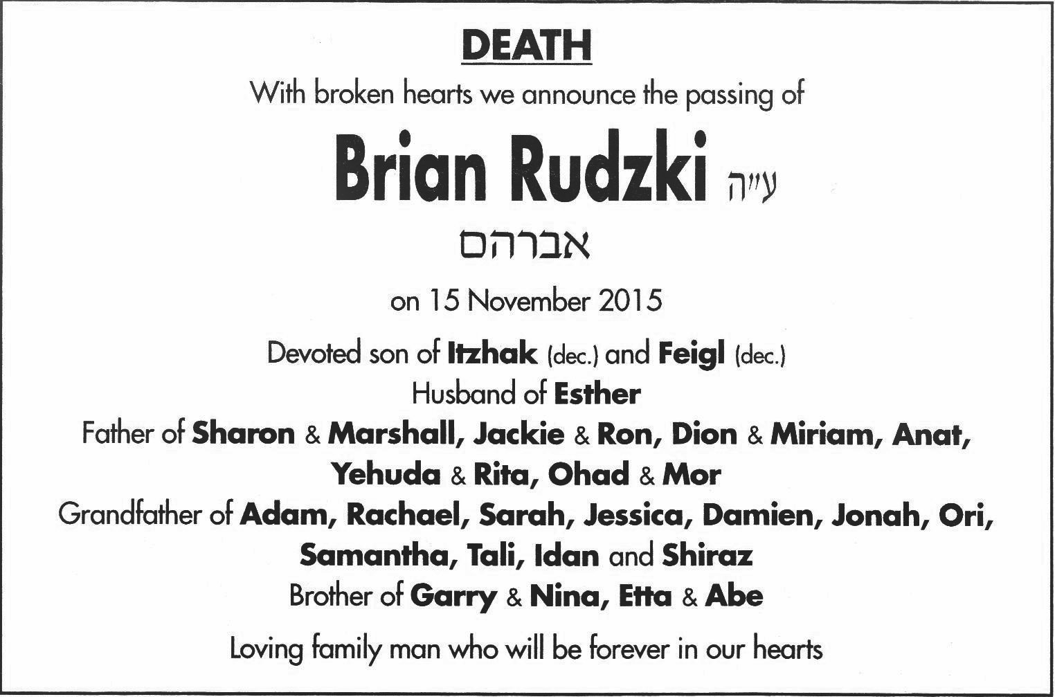 Mony and I wish Brian's family our sincerest condolences. Among my earliest Betar recollections is catching the tram together with Gary each Sunday afternoon to Beth Weizmann and again on our way home.