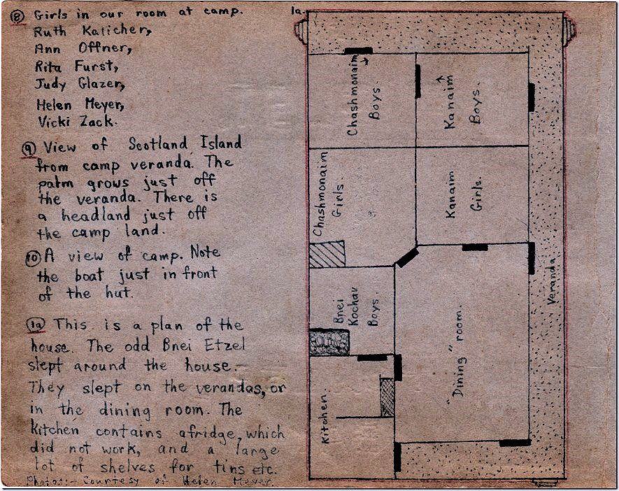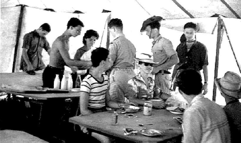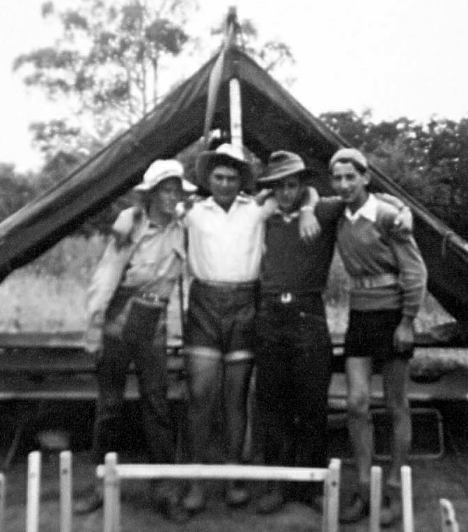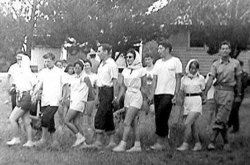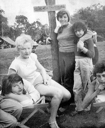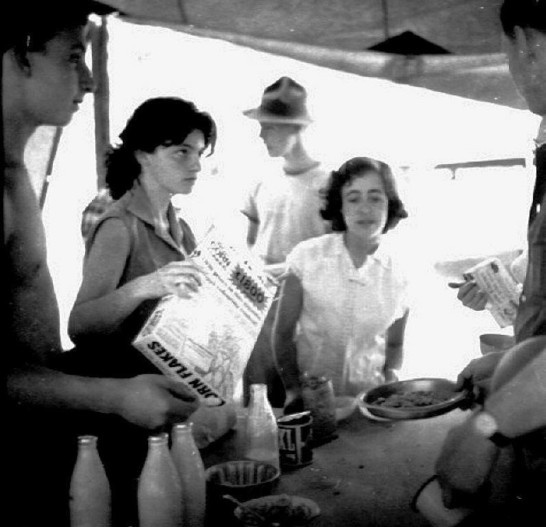 10. In my memory, from the mid 1950s until the early 1960s, we (the chanichim) did our own cooking. Vera and Evelyn were from Sydney Betar. Coming from Sydney gave them a certain cachet. L to R: Vera Beer, Avraham Appel, Eric Aufgang, Gertrude Gordon (in front) Evelyn Ansley. Mrs Gordon was the camp cook and may have been the first 'specialist' cook at Betar camps. (EK).