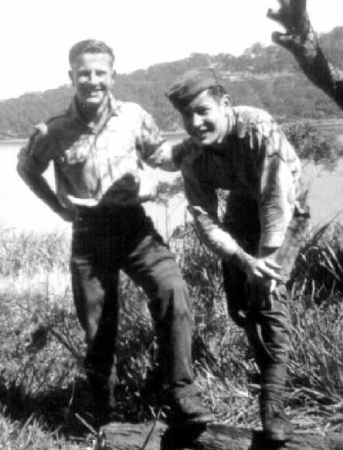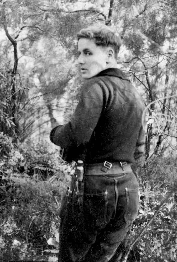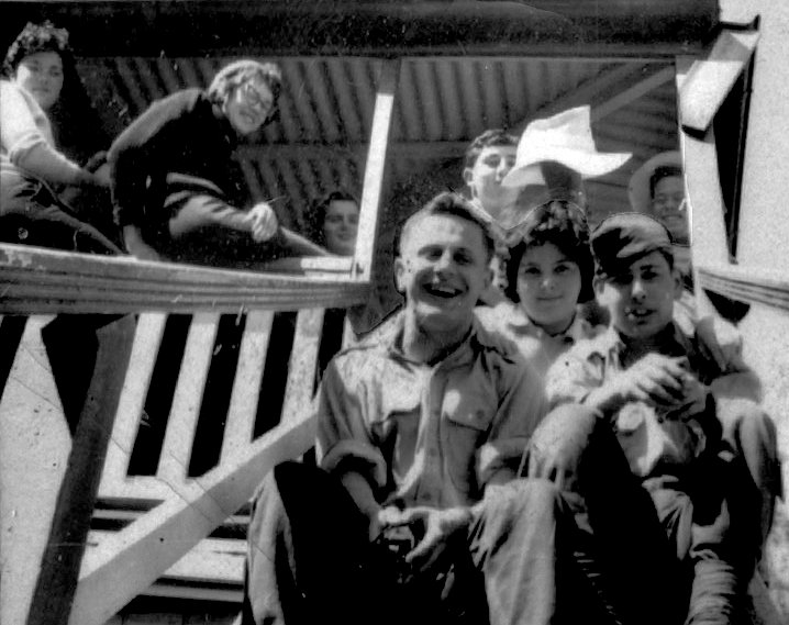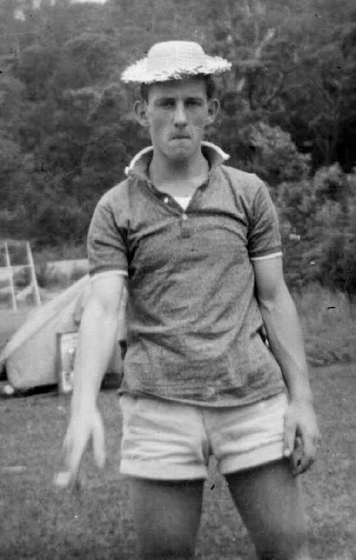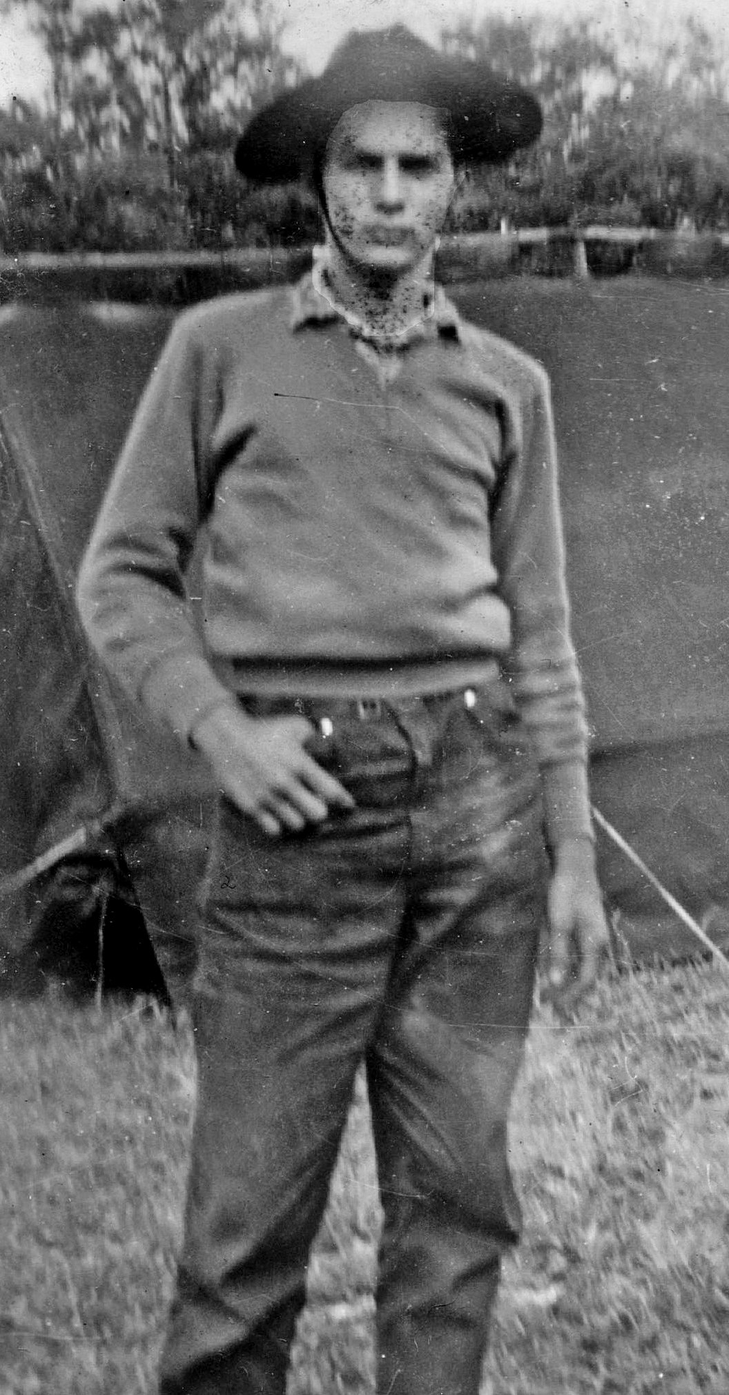 11. Aaron was popular with the girls. I think it was, in part, because he did not talk much and so fitted the 'strong, silent' type. This was a most popular photo. Vera Gordon gave me this copy. I don't know who took the photo, but from Aaron's pose my guess would be that it was a female. (EK).