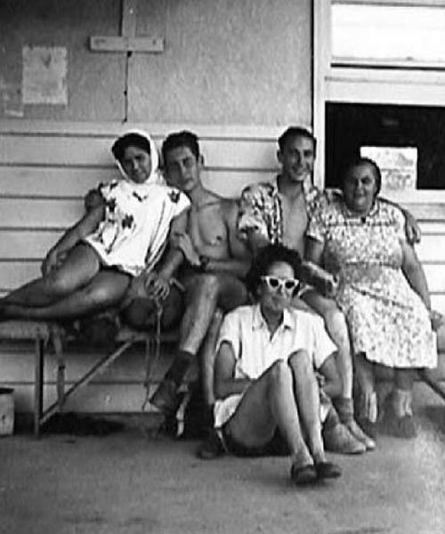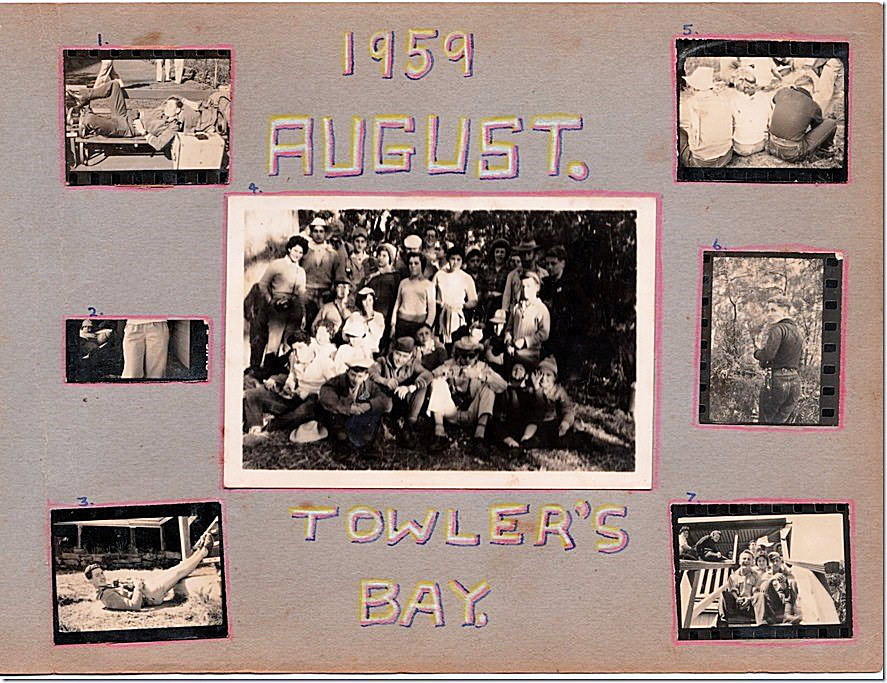 62. Towlers Bay. L to R rear: Ruth Kalicher, Ann Offner, Helen Meyer. Front Harry Stuart, Irene Winkler, Avraham Appel. VI.