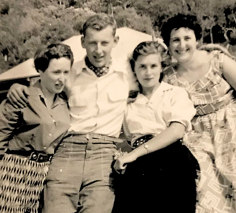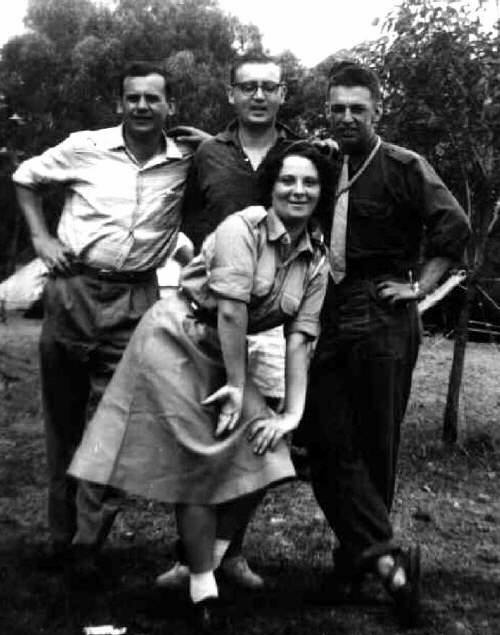 48. Frida Goldstein( Sheiner), Alf Van Der Poorten, Eric Aufgang, & Miriam Deston ( Briggs) in Melbourne. Clive Kessler's photo. MB.