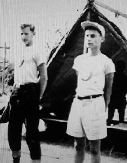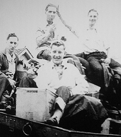43. On truck to camp :Brian Addess & Henry Briggs in front. MB.