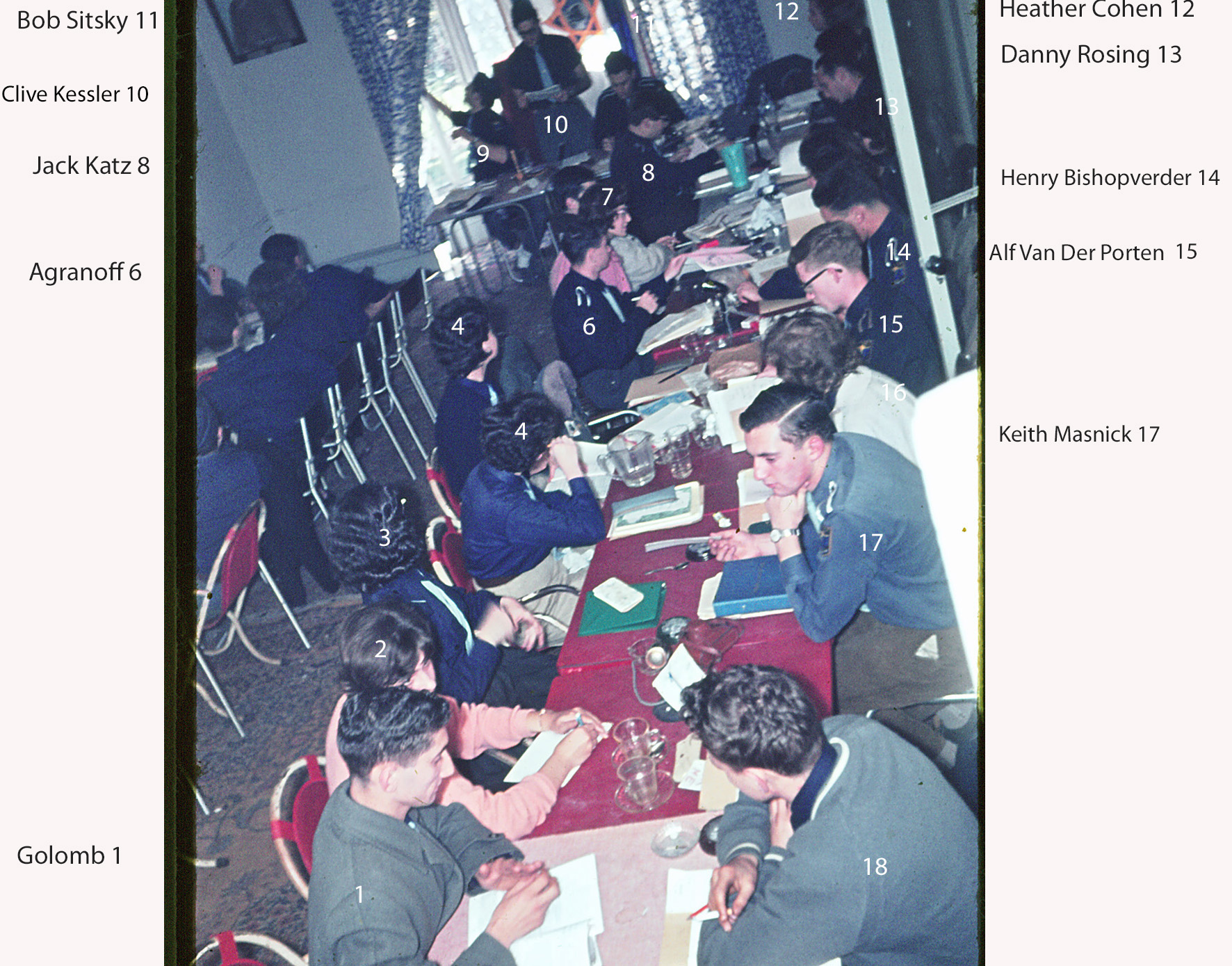 44. A very serious moment. (a quarter of) Bob Sitsky, Clive Kessler, Shimshon Feder, Alfie van der Poorten, Sam Offman, Aaron Ninedek.