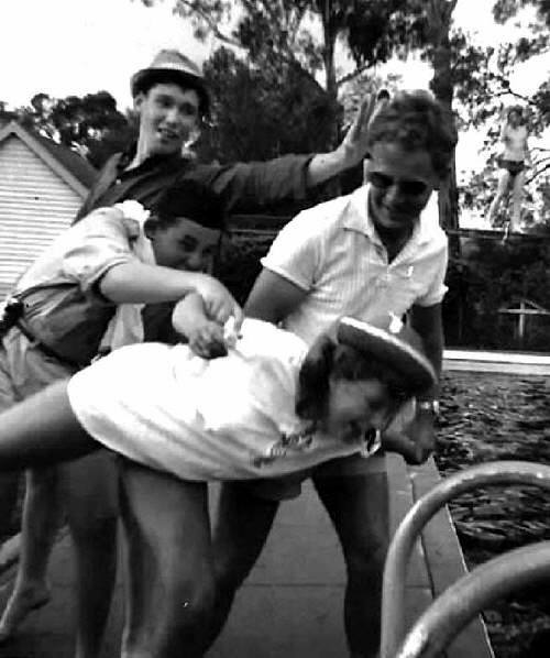 28. A public swimming pool somewhere. At a party at 450 Glen Eira Rd, Caulfield, Loy was confronted with a big decision. He had to choose between two girlfriends - Nadine (AKA Duds) - and Jessie Rosmarin. It was a tense atmosphere that evening as he deliberated and prevaricated, and there were plenty of people around giving advice. (EK).