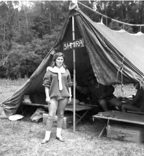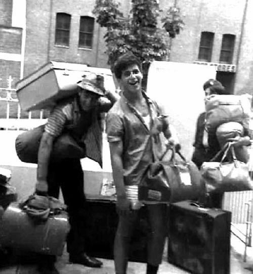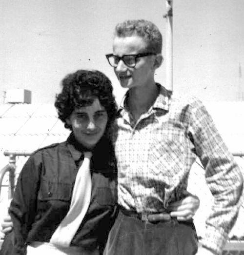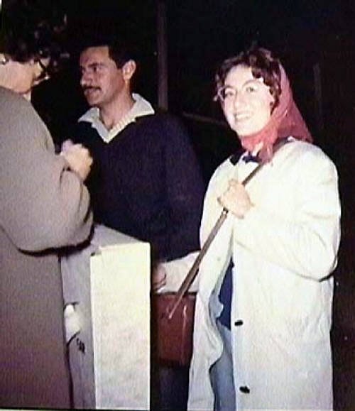20. Lilly Skall (back to camera), Aaron Ninedek, Evie Skall. Returning from a year in Israel on Machon. Sister, Judy, took this photo. Aaron was Natziv of Betar Australia at the time. (EK).